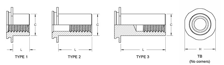 | TBSS-1032-.187-P | Inch | 10-32 | .187 | 1 | .062 | .344 | .281 | HRB 70 or less | .290 | .375 | 300-Series stainless steel | Passivated and/or tested per ASTM A 967 |